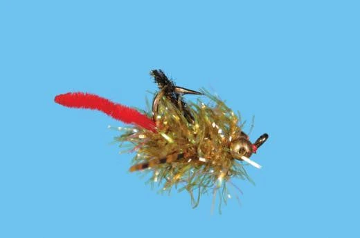 Another excellent carp fly. A bit of a hybrid pattern, it has elements of a dragon fly nymph, juvenille crawfish, and a worm. An excellent all around pattern. Size 8.