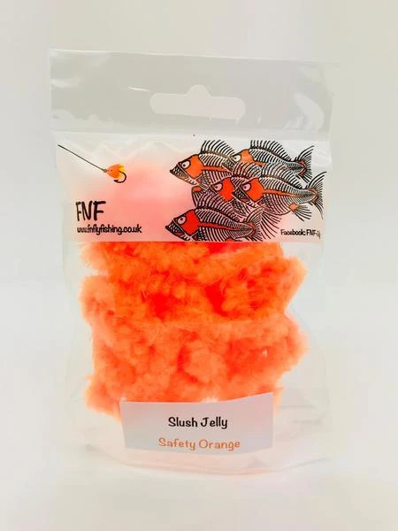 FNF Slush Jelly – FNF have spent a lot of time perfecting an easy to use 15mm fritz/chenille that gives a slush like appearance in the water. A mixture of jelly fibres and a candy floss like compound gives this material its slushy appearance when wet. Slush Jelly is a 15mm fritz/chenille mounted on a micro core.