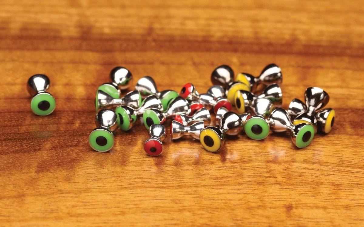 Hareline Pseudo Eyes – Tie them in and you have it all. Brass Barbells with built in colored eyes with pupils.