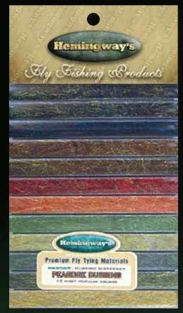 Hemingway’s P.D. is one of the most effective Peacock blends offered in the world of fly tying today. It is a great substitute for natural herl and highly sought after by the most selective tiers looking for that extra edge. What gives this dubbing such a high standard of quality is the fact it’s medium/soft blend and perfect color mixtures give it a superior “3D translucent ultra buggy effect.” Peacock Dubbing is in huge demand because of its durability, versatility, and that it can help you tackle any fly tying challenge from the classics, to the most modern twenty-first century patterns. We guarantee this will be one of you new goto’s! Assortment of 12 colors