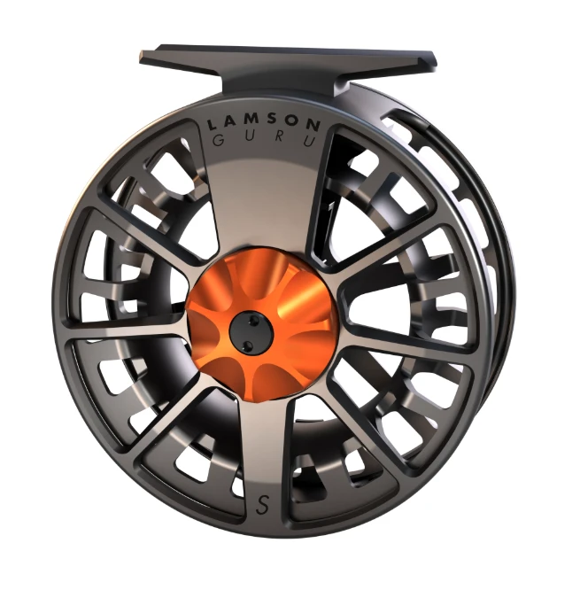 Lamson Guru S Fly Reel- The Guru Series reels are fully USA machined, lightweight, and very durable. The Guru S has a larger diameter arbor and narrower spool than the previous generation Lamson Guru reels. By changing the machining technique, Lamson was able to make the reel lighter and improve the durability of the spool. Available in OG (Olive Green), Blaze (-3+ & -5+ Only), or Arctic (Lamson Guru S Fly Reel-7+ & -9+ Only).