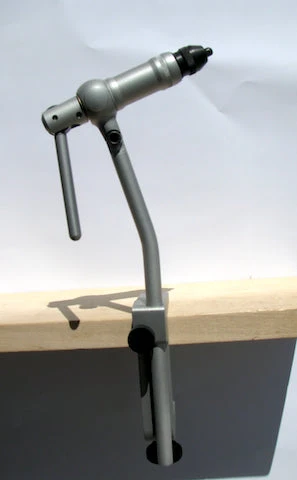 The Apprentise Rotary Vise offers you functionality, simplicity and quality that a beginner as well as the experienced tyer will be satisfied with for years. The standard features of The Apprentise are a rotary head with an aluminum tension knob, black oxide jaw housing and jaws and a silver powder coated c-clamp with a 8″ hinged stem.