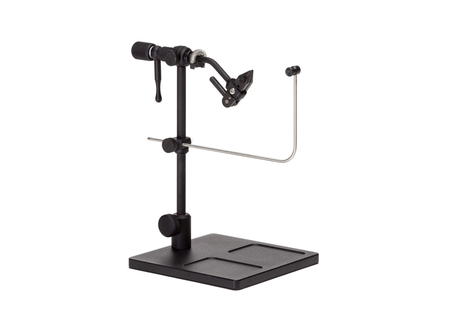 Renzetti Saltwater Traveler 2304 Series Vise- 6×6 Base – The Saltwater Traveler True Rotary Vise offers you the same great features of the Traveler 2200 plus more. While you are still enjoying the True Rotary feature, the adjustable bobbin cradle, the 7″ anodized aluminum and a cam operated jaws, you will also enjoy the material clip and a spinning attachment.