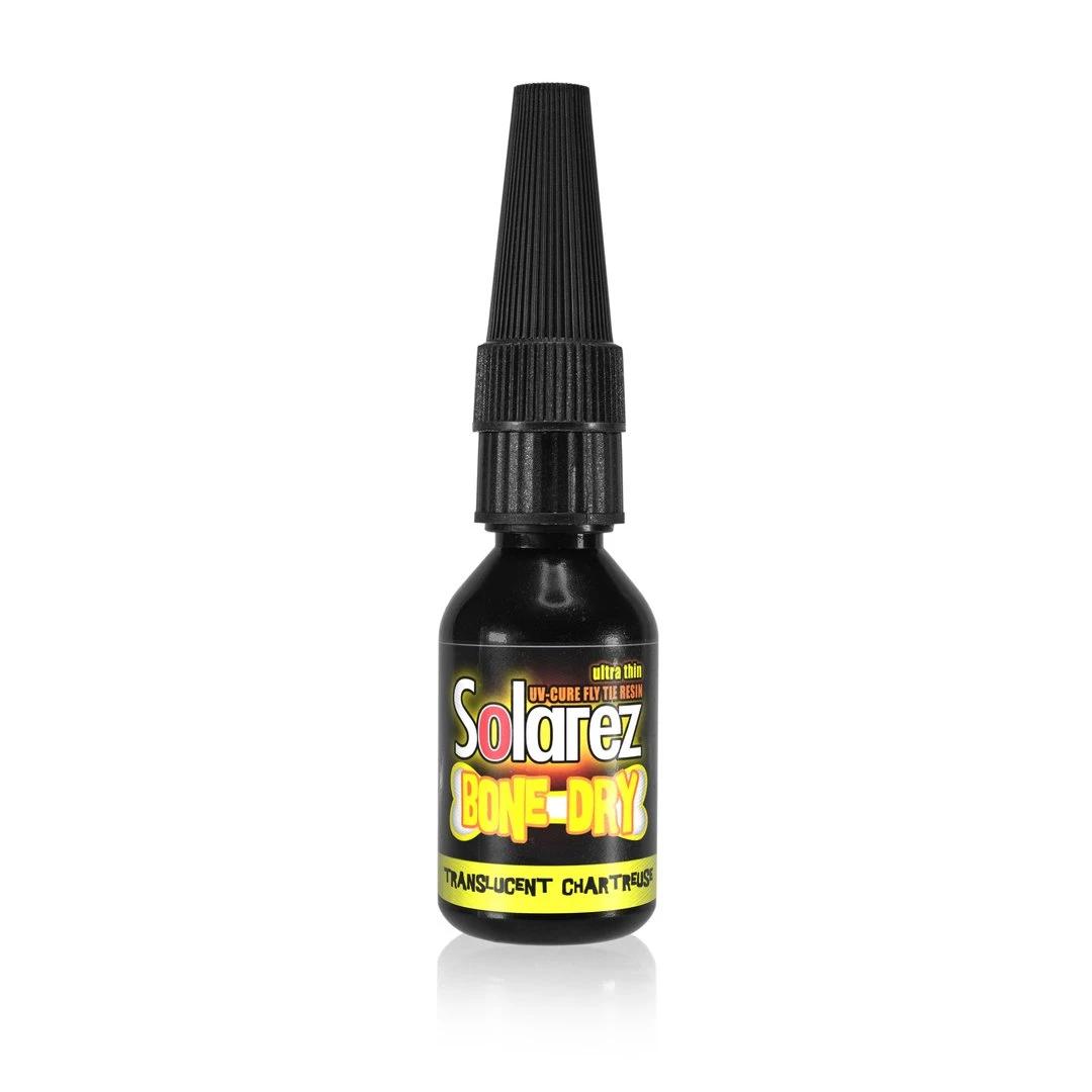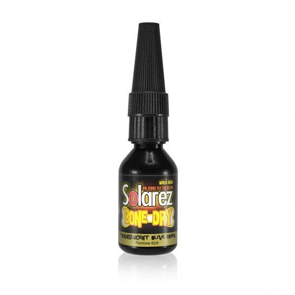 Solarez Bone Dry Colors is an ultra thin tinted UV Resin. Solarez Bone Dry sets up quickly and is very durable. A great new UV resin for tying perdigon style nymph patterns.