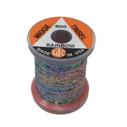 Wapsi Midge Tinsel- this thin tinsel is strong enough to be used directly on a tying bobbin. Great for making bodies on perdigon nymphs or small midges. Tying tinsel bodies is extremely easy with wapsi midge tinsel.